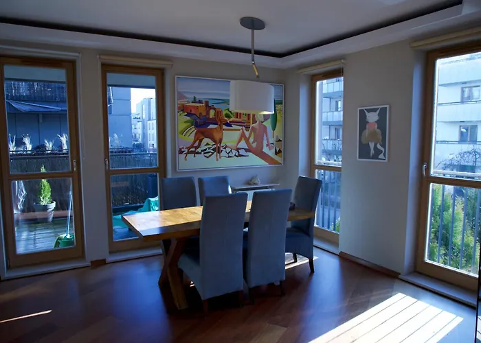 Es befindet sich in ungefähr 1 km Entfernung vom Plakatmuseum sowie in ungefähr 7 km Entfernung von dem Łazienki-Palast. Dieses Apartment ist im Bezirk Wilanów von Warschau gelegen. Das Belvedere ist in einer Entfernung von ca. 15 Autominuten vom Apartment.